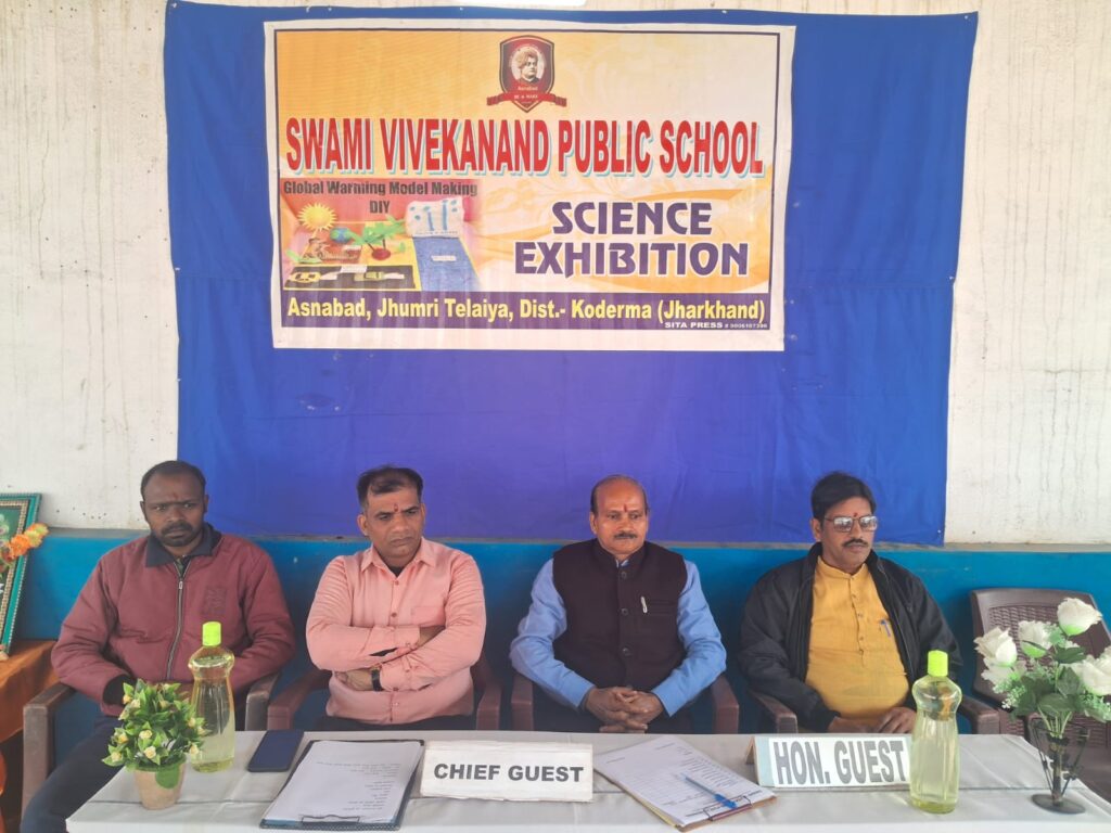 कोडरमा :- असनाबाद स्थित स्वामी विवकानन्द पब्लिक स्कूल में भव्य रूप से विज्ञान मेला का आयोजन किया गया। इस अवसर पर मुख्य अतिथि के रूप में रामलखन सिंह यादव कॉलेज के सेवानिवृत प्रोफेसर रामावतार केसरी उपस्थित थे। तथा निर्णायक की भूमिका में बी०आर० इंटरनेशनल के सह- प्रधानाध्यापक नवल किशोर आनंद और साथ ही विशिष्ट अतिथि के रूप में सेवा भारती के जिला सचिव आलोक कु० सिन्हा और शुभम कुमार भी उपस्थित रहे। कार्यक्रम का शुभारम्भ सभी अतिथियों द्वारा संयुक्त रूप से दीप प्रज्जवलन करके किया गया। मुख्य अतिथि ने अपने विचार में कहा कि इस प्रकार के बच्चे ही आने वाले कल में देश के भविष्य हैं। इसी तरह के सोच के बच्चे देश को पुनः परम वैभव की ओर ले जाएँगे। प्रतियोगिता में विभिन्न प्रकार के प्रदर्श बच्चों के द्वारा बनाया गया। विशेष रूप से जल चक्र, जल शुद्धिकरण, ज्वालामुखी, भोजन के स्त्रोत,स्मार्ट सिटी पर प्रदर्शन प्रस्तुत किए गए। इस प्रतियोगिता में प्रथम स्थान सोनल सिन्हा,द्वितीय स्थान संयुक्त रूप से रौशन, प्रसन्न,निक्की प्रिया और सोनी को प्राप्त हुआ।तथा तृतीय स्थान संयुक्त रूप से अंकित सिद्धांत,अक्षय,सोनम और जानवी को प्राप्त हुआ । निर्णायक ने अपने आशीर्वचन में बच्चों को प्रोत्साहित करते हुए उनके उज्जवल भविष्य की कामना की और कहा कि वास्तव में यही बच्चे नौनिहाल देश को फिर से विश्व गुरु के पद पर आसीन करेंगे। कार्यक्रम को सफल बनाने में विद्यालय के निदेशक सह प्रधानाचार्य सूरज कुमार,प्रीति कुमारी,दीपक कुमार,रितिका कुमारी,प्रियंका कुमारी और विकास कुमार की अहम भूमिका रही। कार्यक्रम के अंत में धन्यवाद ज्ञापन सह-निदेशक दीपक कुमार ने किया। शांति मन्त्र के साथा कार्यक्रम समाप्ति की घोषणा की गई।