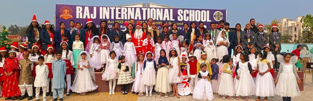 कोडरमा स्थित राज इंटरनेशनल स्कूल में 24 दिसंबर 2024 , मंगलवार को बहुत धूम धाम से क्रिसमस का जश्न मनाया गया . सर्वप्रथम विद्यालय में आये मुख्य अतिथि का स्वागत सैंटा क्लॉज़ के वेश भूषा में आये स्टूडेंट ने गुलदस्ता देकर किया.